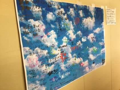 9月11日(木)修学旅行まであと5日 公開日 2025/09/12 更新日 2025/09/12 学校行事 いよいよ来週に迫ってきました。3年生の廊下に掲示した青空ポスターに、旅行時の晴天と成功を願って書き込みをしました。3年生の思いが伝わってきます。週末を活用して、持ち物の準備等を進めていきましょう。