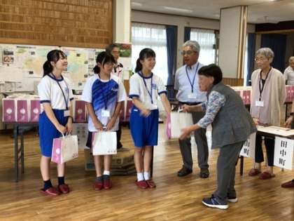 9月13日(土)深田山自治区敬老会2 公開日 2025/09/15 更新日 2025/09/15 地域学校共働本部 午後の受け渡しの様子です。ご高齢の方を敬う気持ちや、ご長寿をお祝いする気持ちをこめて「おめでとうございます!」と、言葉を添えて拍手でお渡しする逢中生の姿がありました。 中学生と一緒に活動いただいた地区の皆様、ありがとうございました。