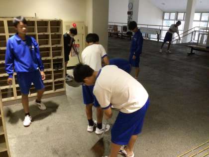 清掃の様子です。自分たちが過ごす場所ですので、自分たちできれいな環境にしていきましょう。