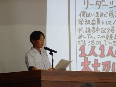 10月6日(月)後期生徒会役員選挙を行いました2 公開日 2025/10/07 更新日 2025/10/07 お知らせ どの立候補者も自分の考えを堂々と発表でき、大変素晴らしい内容でした。学校をよりよくしようとする意欲がとても伝わってきました。 聞く側もしっかりと聞くことができ、後期も輝く逢中生の姿が楽しみになりました。このあと、各教室に戻って投票を行いました。