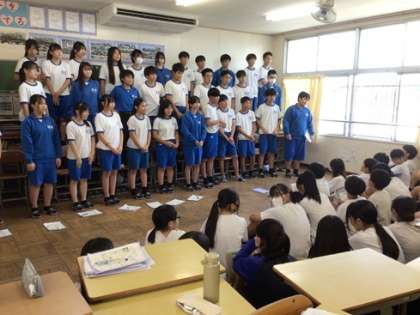 合唱祭に向かっての練習風景です。異学年で聴き合いすることで、合唱について学んでいる姿もありました。