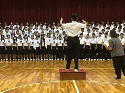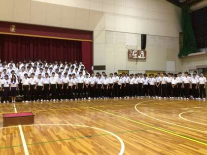 10月9日(木)学年合唱をがんばっています 公開日 2025/10/10 更新日 2025/10/10 お知らせ 今年の合唱祭では、3年生が学年合唱を披露します。曲はRADWIMPSの「正解」です。写真は、プレ合唱のあと、全体で練習をしている様子です。3年生の歌声がとても楽しみです。