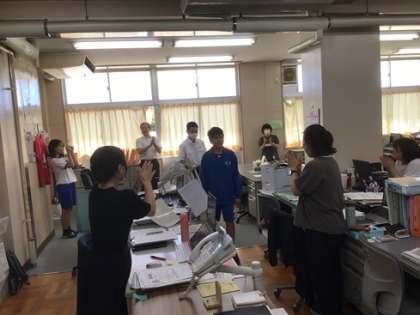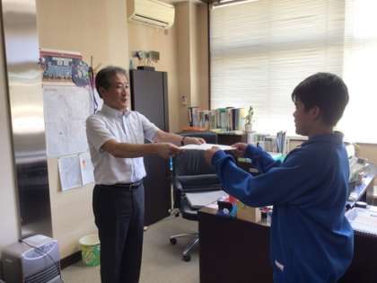 10月9日(木)逢中賞13 公開日 2025/10/12 更新日 2025/10/12 お知らせ 校長室で表彰を行ったあと、職員室を通って教室に戻ります。その際には、生徒のがんばりを称えて職員から温かい拍手が贈られます。