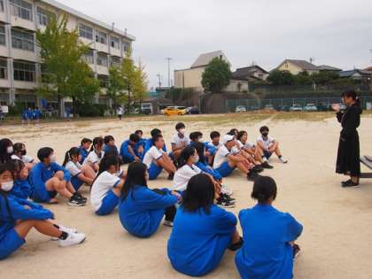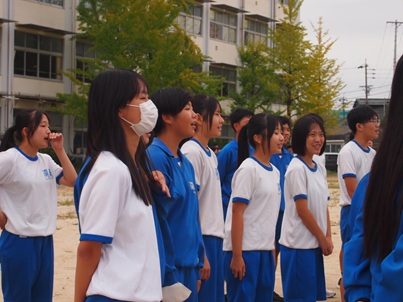 合唱の練習と言えば、屋内で行うのが普通だと思いまが、運動場を走ったのちに歌うことで、声量が増すという練習方法があるようです。その練習方法にチャレンジしている2年生です。