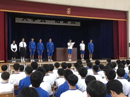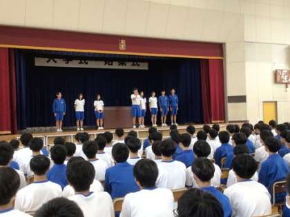 10月14日(火)折り返し集会3 公開日 2025/10/15 更新日 2025/10/15 お知らせ 続いて、前期生徒会役員の退任と後期生徒会役員の任命を行いました。それぞれの代表生徒の言葉からは、生徒会活動や逢中に願う強い気持ちが伝わってくるものでした。
