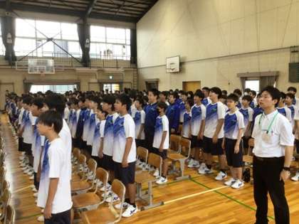 金曜日に開催れる合唱祭で取り組む全校合唱(「校歌」「翼をください」)の練習も行いました。