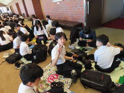 昼食の様子です。しっかり食べて、午後からもがんばりましょう。写真は1年生です。