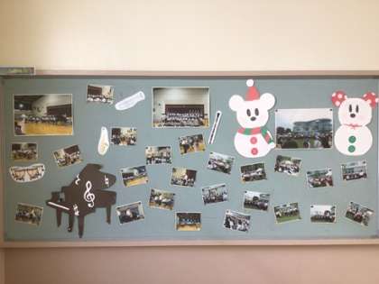 交流館ふれあいまつりでの演奏や、ラストコンサート(7月)での演奏などの思い出写真が、たくさん掲示されています。活動の様子がとても伝わってきます。
