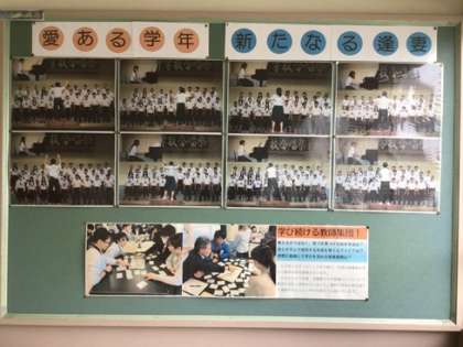 それぞれ合唱祭のクラス写真が掲示されています。皆さんの真剣さが、写真からも伝わってきます。