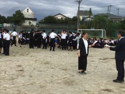 今回は行方不明生徒が出たという設定で、教員が分担して捜索をしました。安全に留意しながら、全生徒の確認できるよう取り組みました。