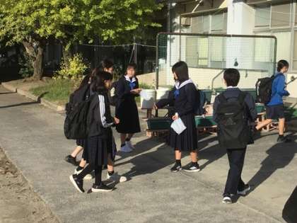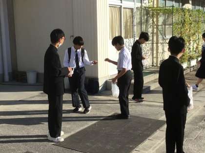 生徒会執行部と代議員が、笑顔と活気あふれる逢中を目指そうと活動としています。登校時、明るくあいさつをしてくれた人に「花びら」を渡します。もらった花びらを自分のクラスの掲示物に貼ることで、きれいな花束を作っていきます。