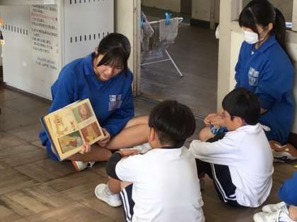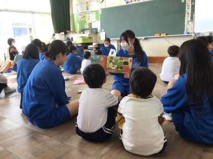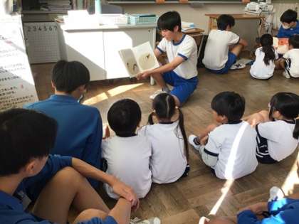学区の小学校にご協力をいただき、逢中3年生が小学校を訪問し、小学1年生の児童と交流をしました。
