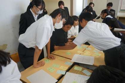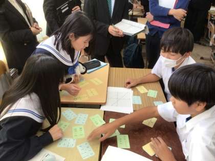 各グループごとに、楽しく学習に参加している姿がたくさん見られました。一次関数のグラフの傾きや切片といった言葉や特徴等について、理解を深めました。