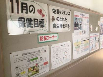 11月の保健目標は「栄養バランスのとれた食生活をする」です。健康的な毎日を送るためにも、毎日の食事を見直してみましょう。