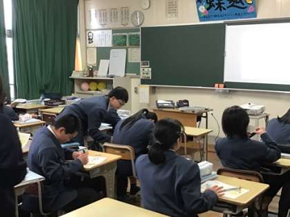 1年生の数学科です。平面図形の学習に入りました。1年生の数学科の後半では、図形の学習が多くなってきます。2・3年生の基礎となる内容です。集中して取り組んでいきましょう。