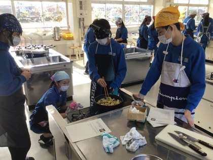 調理が進むにつれ、芋にからめる甘いたれの香りが家庭科室に広がっていきました。上手くできたかな?