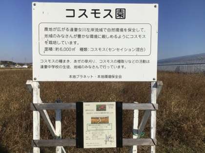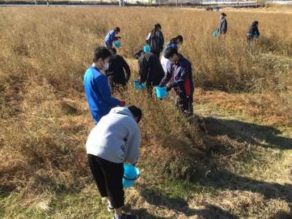 本地プラネットにて行われたコスモスの種取りに、今年も逢中生ボランティアが参加しました。8月にも、逢中生がボランティアとして参加して種をまいたコスモスは、秋に多くの人たちの目を楽しませました。今日は、そのコスモスの種を手作業で集めました。