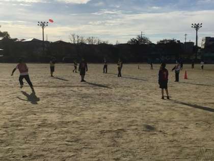 1年生の保健体育科です。アルティメットに挑戦です。アルティメットとは、フライングディスクをパスしながら運ぶ競技です。ディスクを投げたり、キャッチしたりする練習に取り組んでいました。