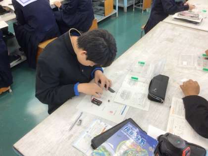 2年生の技術科です。電子部品を使いながら、電子回路の学習を進めています。