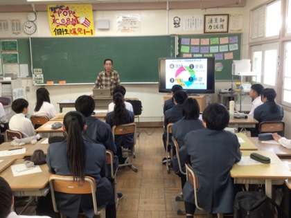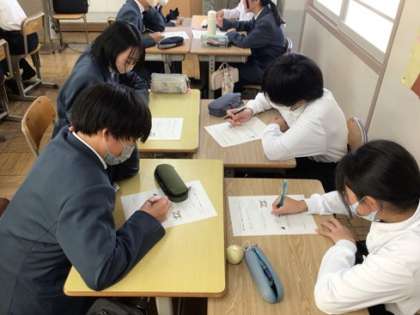 1年生の学級活動です。「ペップトーク」について学びました。ペップトークとは、相手のやる気を引き出し、前向きな行動を促す短い激励の言葉です。相手との信頼関係を築いていくことにもつながっていきます。