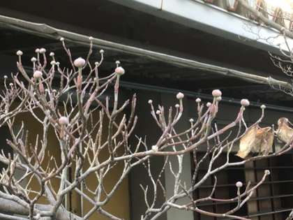 体育館横にあるハナミズキの木です。今は葉もほとんど落ちてしまっていますが、よく見ると春に咲く花のつぼみがついていました。春はまだまだ先のことですが、植物は今から準備をしているようです。