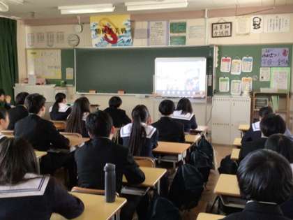 12月19日(金)国際理解教育講演会1 公開日 2025/12/20 更新日 2025/12/20 お知らせ 異なる文化や価値観についての理解を深め、国際的な視野を養おうと開催しました。第一部では、今年度の豊田市中学生海外派遣生徒による報告会です。プレゼン資料などを駆使しながら、自分の体験談をわかりやすく語ってくれました。 本来は全校生徒が体育館に集まって開催する予定でしたが、インフルエンザの感染予防対策のため、オンライン形式での開催となりました。