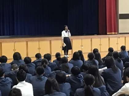 1年生の学年集会です。代表の生徒が、反省と抱負を立派に語りました。