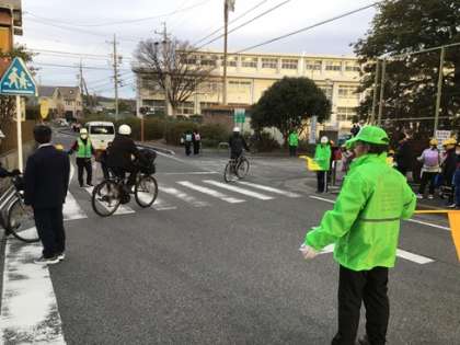 横断歩道での交通整理も地域の方がやってくださいました。時間的に小学生や車の通行も重なり、大変混在する場所です。安全に登校できるのも地域の皆様のおかげです。誠にありがとうございます。
