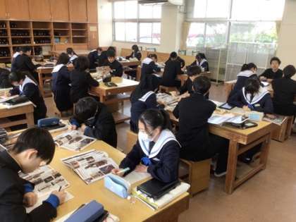 2年生の美術科です。仏像の写真を見ながら、鑑賞の学習をしています。