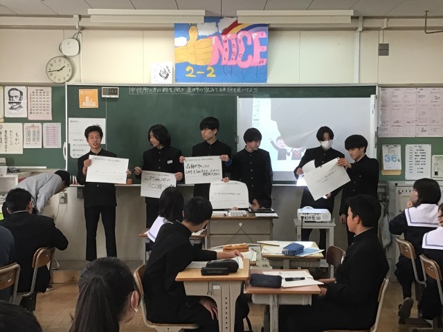 授業の後半では、グループでまとめた考えを発表し合いました。次回の授業では課題の解決策を考えることで、よりよい社会の実現を目指そうとする姿に迫りたいです。ご協力いただいた豊田市役所都市計画課の職員の皆様、誠にありがとうございました。