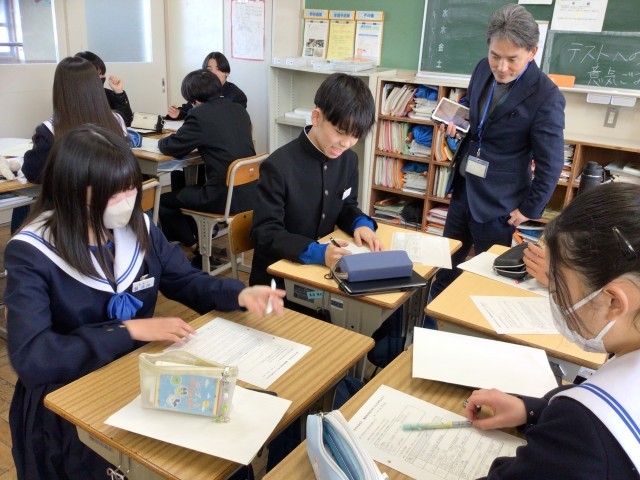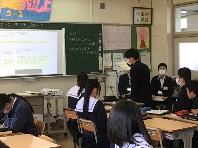 2月4日(水)授業の様子2 公開日 2026/02/05 更新日 2026/02/05 お知らせ 2年生の社会科です。先週の授業で取り組んだ学習課題「豊田市の強みと課題を見つけよう」について、今日は解決策を各グループごとに提案しました。今回も豊田市役所都市計画課の職員の方々にご協力をいただきました。→ 1月28日(水)授業の様子1→ 1月28日(水)授業の様子2 +2