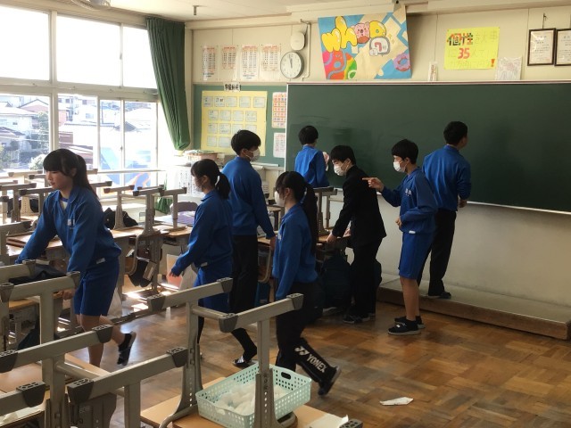 3年生が、3年間過ごした学校に感謝の気持ちを表すとともに、卒業への気持ちを高めていこうと、「恩返し活動」と称して清掃活動を行いました。今回は、特別教室を中心に取り組みました。