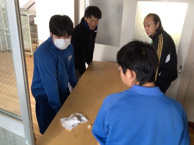 とことんきれいにしようと、部屋の中にある机や椅子、備品などを注意深く室外に運びました。協力のおかげで、短時間で移動ができました。