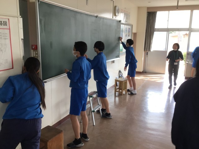 床や机を磨き上げたり、黒板や扇風機のカバーをきれいにしたりなど、普段の清掃ではなかなかできないところまで取り組みました。