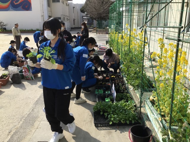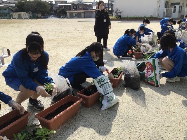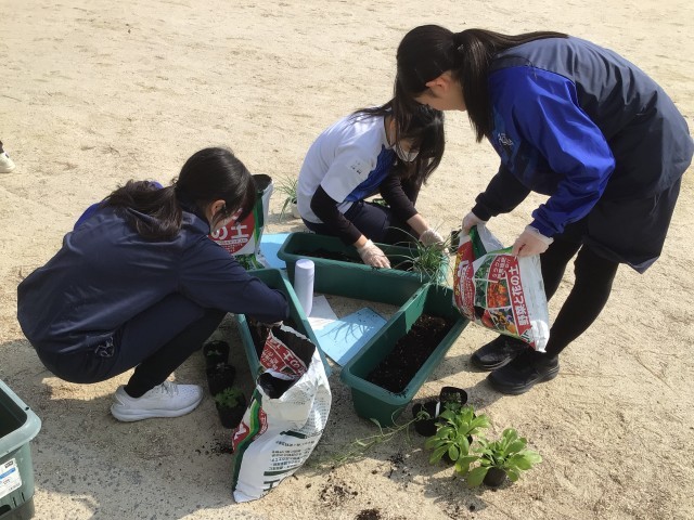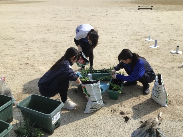開花した様子を思い浮かべながら寄せ植えする種類を選んだので、どのように咲くのか今からとても楽しみです。また、保護者ボランティアの方々にもご参加いただきました。逢中生と共に活動してくださり、ありがとうございました。