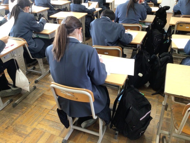昨日まで行っていた学年末テストが、返ってきます。テストは終わった後が大切です。自分の苦手な内容など、しっかりと復習しておきたいですね。写真はテスト直しを進めている1年生です。
