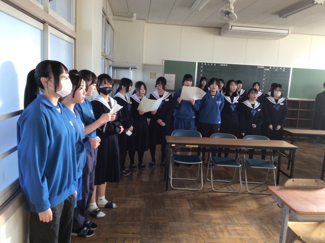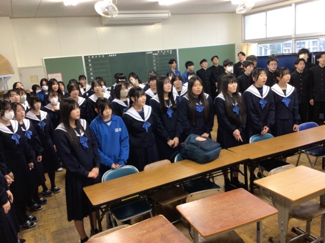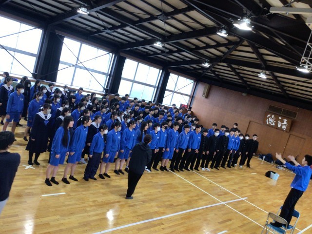 合唱練習を行っている3年生です。今年の卒業式では3年生の全体合唱を行います。RADWIMPSの「正解」とEXILEの「道」の2曲です。どんな歌声を響かせてくれるのか、楽しみにしています。