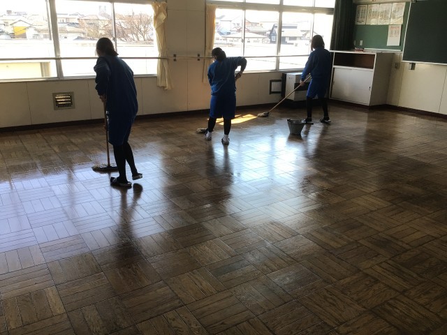ワックスがけをしながら、教室での様々な出来事が思い出されているのではないでしょうか。卒業そして、新しい1年がやってきます。3年生の皆さん、ありがとうございました。