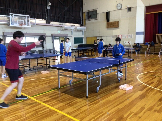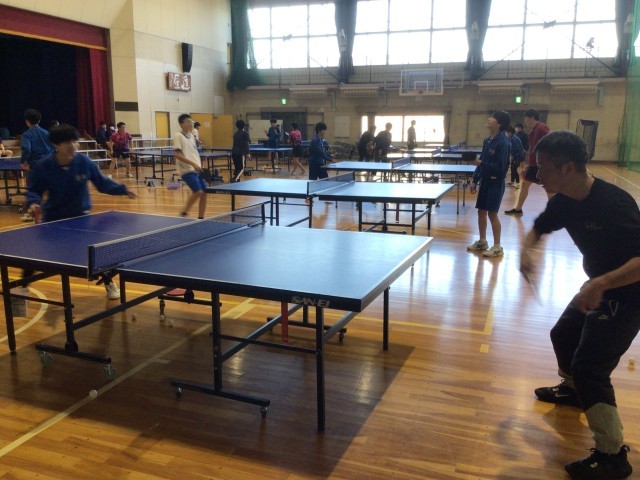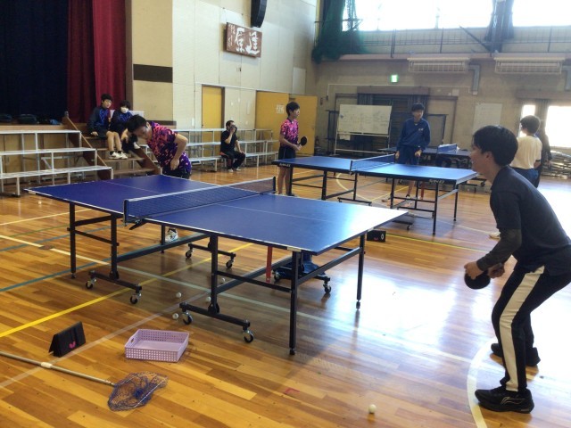 男子卓球部です。こちらも3年生が参加したり、教員と対戦したりしました。やはり中学生の方が一枚上手でした。