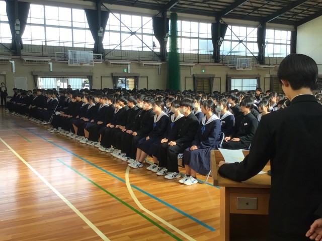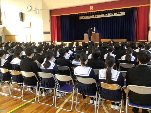 3年生が、明日に予定されている同窓会入会式の練習をしています。今年の3年生は第48期生となります。他の同窓生とともに、逢妻中学校を見守ってくださいね。
