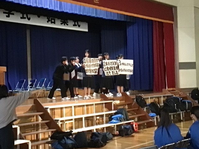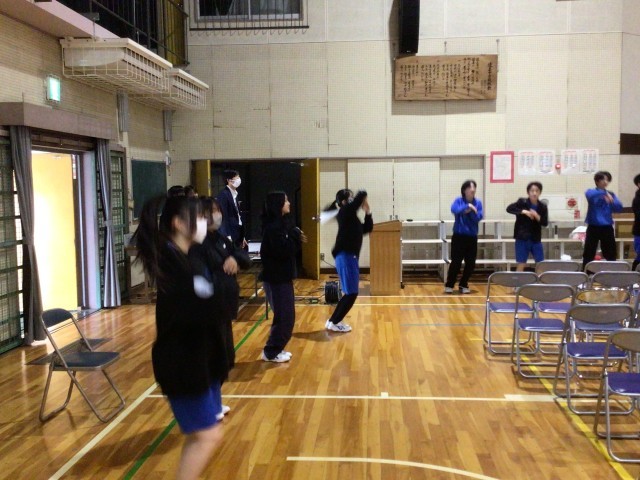 3年生がこの3年間を振り返りながら、楽しく過ごしてもらえる時間にしようと、1・2年生もがんばっています。明日はよろしくお願いします。