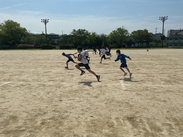 体育祭に向け、バトンパスの練習を行っていました。日本は世界で戦うためにバトンパスにこだわっているようです。逢妻中体育祭でもバトンパスが勝敗に大きく影響するのでしょうか。