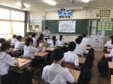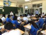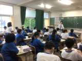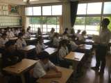 1年生の道徳科です。実習生が授業を行っています。近くの子と意見交換をしながら、...