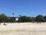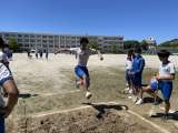 3年生の保健体育科です。走り幅跳びの練習をしています。学習用タブレットを用いて...