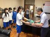 家庭科部の生徒たちが、自分たちで制作した「配膳台カバー」をプレゼントしてくれま...