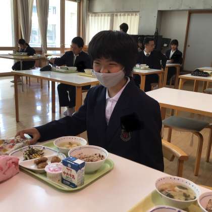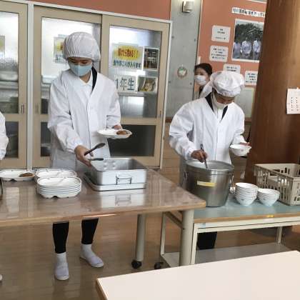 1年生も給食準備をしています!