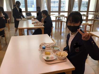 今日の給食はたけのこがたっぷり入ったちらし寿司でした!