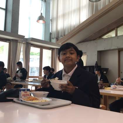 中学校の給食では、しんじょを2つ食べられることに1年生は驚いていました!
