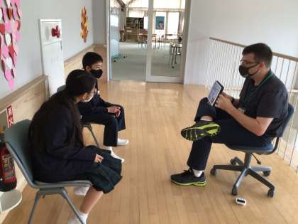 アメリカの中学生の1日を英語で聞きました。日本との違いに生徒はとても驚いていました。また、グループでwhatを使って会話を楽しみました。