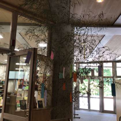 課題図書の展示もしています!七夕の短冊も増えてきました!